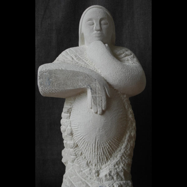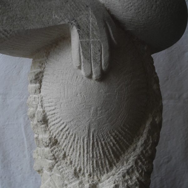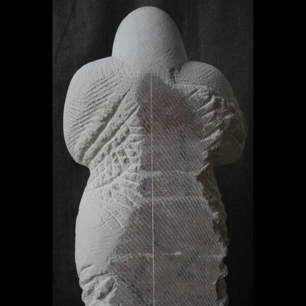 My aim was to see how little intervention was necessary to imbue a stone with character and spirit. The raw tooled surface is a record of how the figure was achieved – once the form was found, I stopped without further refinement.