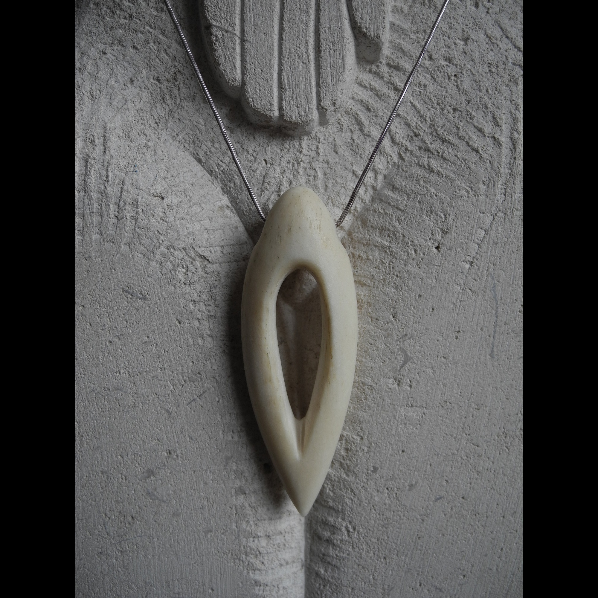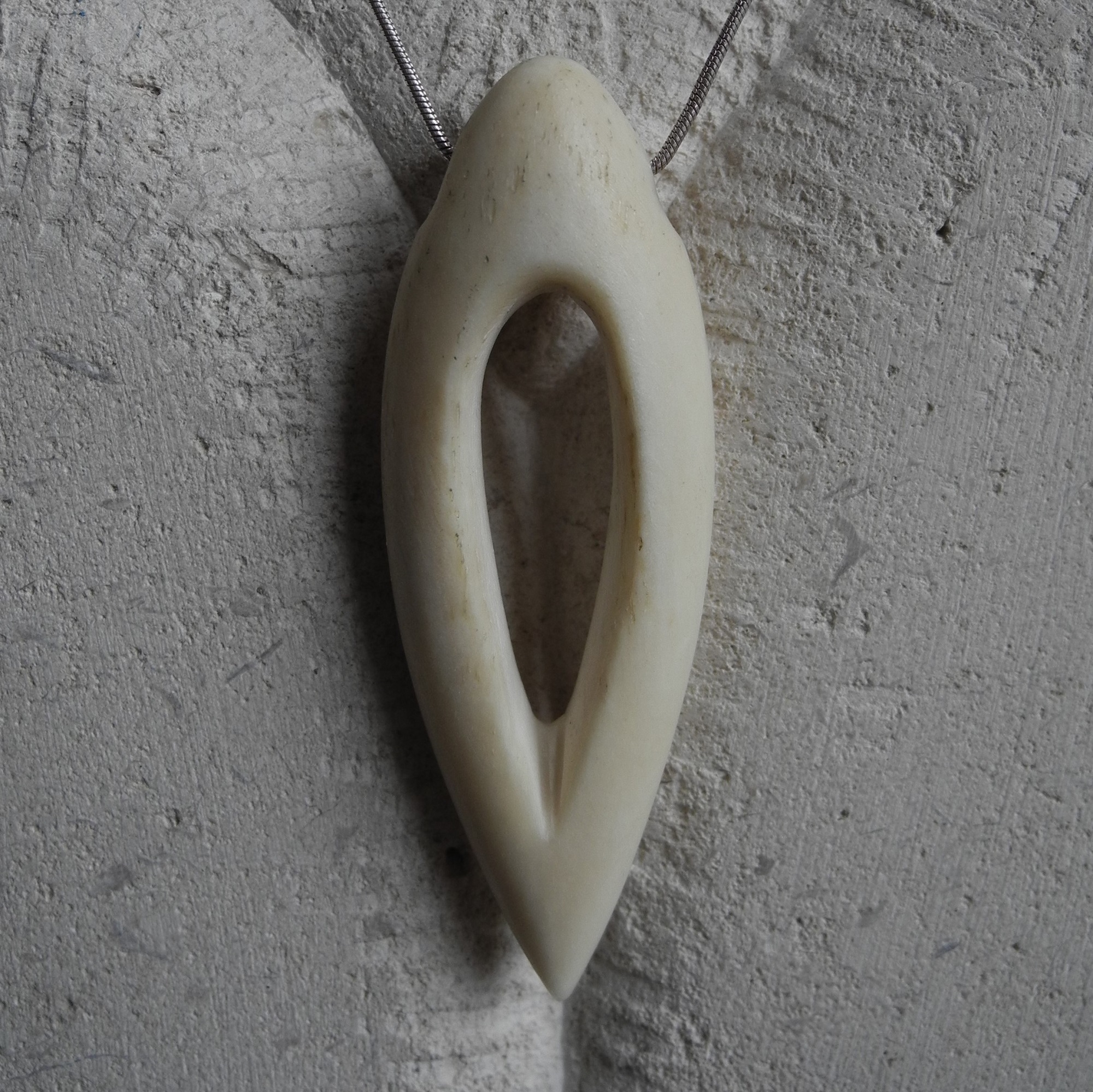 My ethos as a carver of bone: I often retain raw elements of the natural bone, a tactile secret on the reverse of the pendant – respecting the nature and history of the piece.