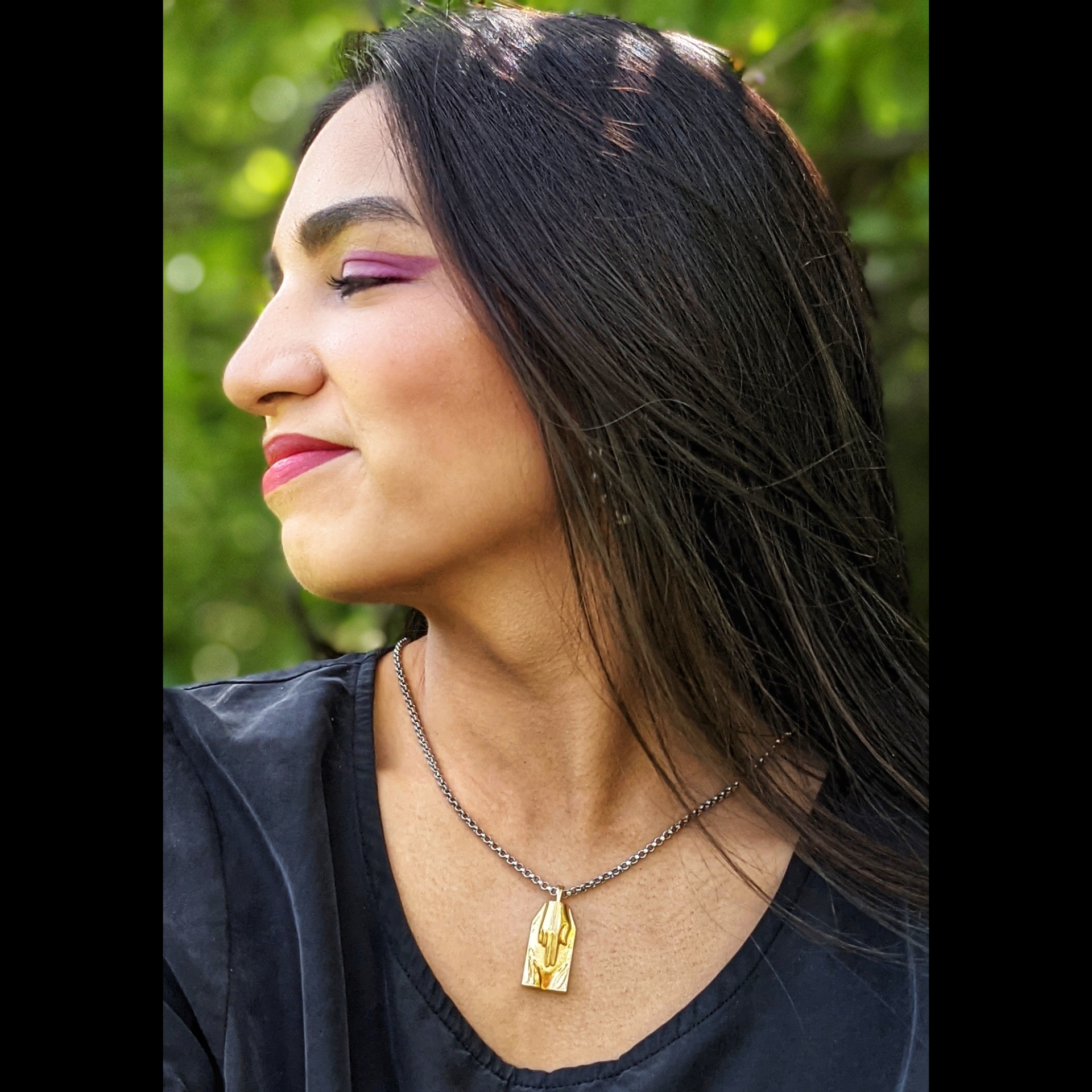 A totemic piece of wearable art celebrating the joy & healing power of self-love. This pendant was created by 3D scanning my original stone sculpture (Sacred Wound: The Healing Touch) and digitally manipulating it into an empowering piece of jewellery.