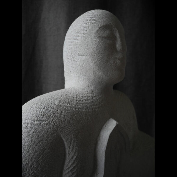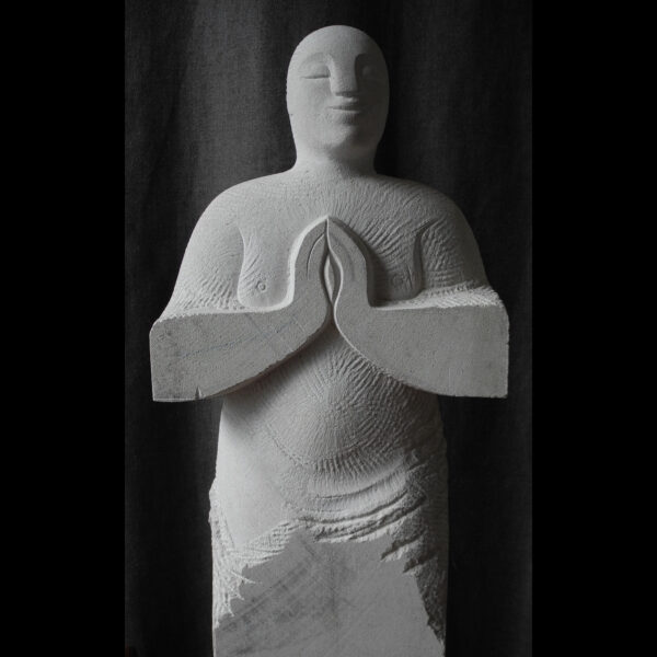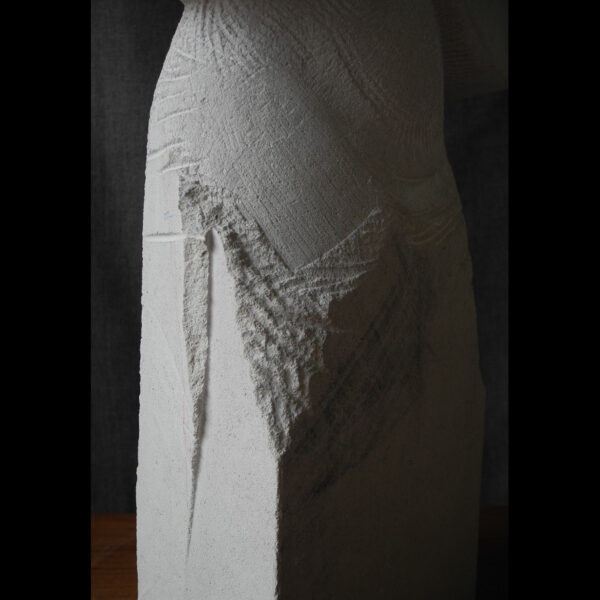 It was my very first non-commissioned, personal sculpture. Without a client to satisfy, I left if unrefined, with tool marks, uncut stone and crayon marks visible. I stopped each stage as soon as I felt it conveyed the spirit I was after, and with this I found my way forward.