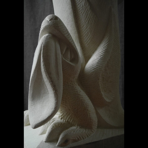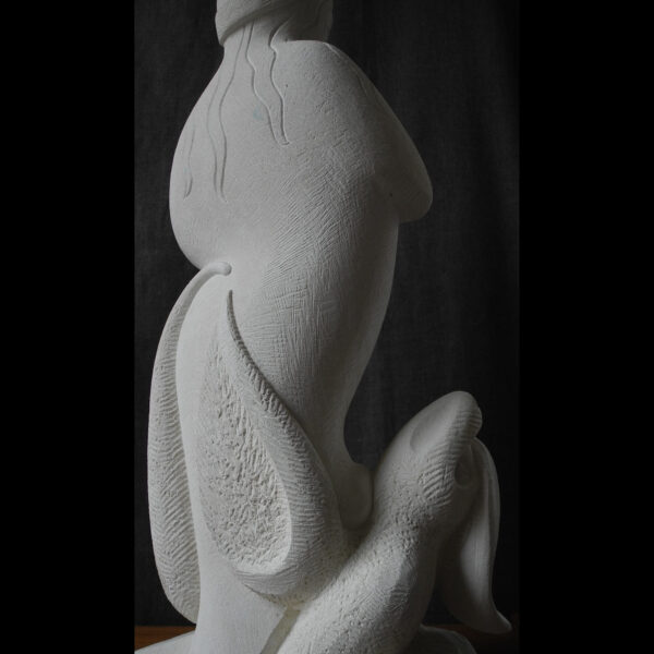 In my interpretation I simplified the form to emphasise the underlying lines of structure which direct the viewer’s gaze around the sculpture. The pose and outline remain the same.