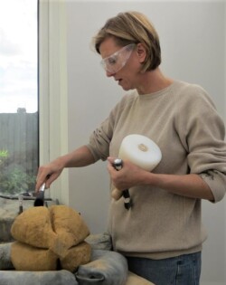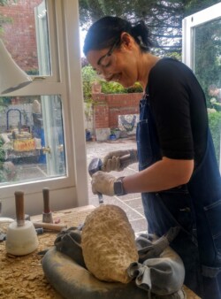 ‘I’m a Lucy Churchill stonecarving addict. I would do these courses every month if I could! Despite the Covid restrictions Lucy kept it compliant but fun. Small numbers meant a superb one to one support was available at all times and I was overjoyed with my finished piece. Lucy is a brilliant host and feeds you well, even catering for my vegan needs without any concerns. If you want to learn how to carve stone, this is THE COURSE to go to go on.’
